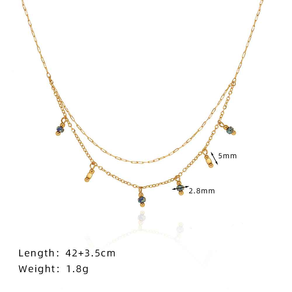 Elevate your accessory game with this exquisite gold necklace, a perfect blend of elegance and modern design. Crafted from durable titanium steel and adorned with delicate glass beads, this piece is both lightweight and durable, weighing only 1.8g. Its adjustable chain offers a length ranging from 42 to 45.5 centimeters, ensuring a comfortable fit for any neckline.
