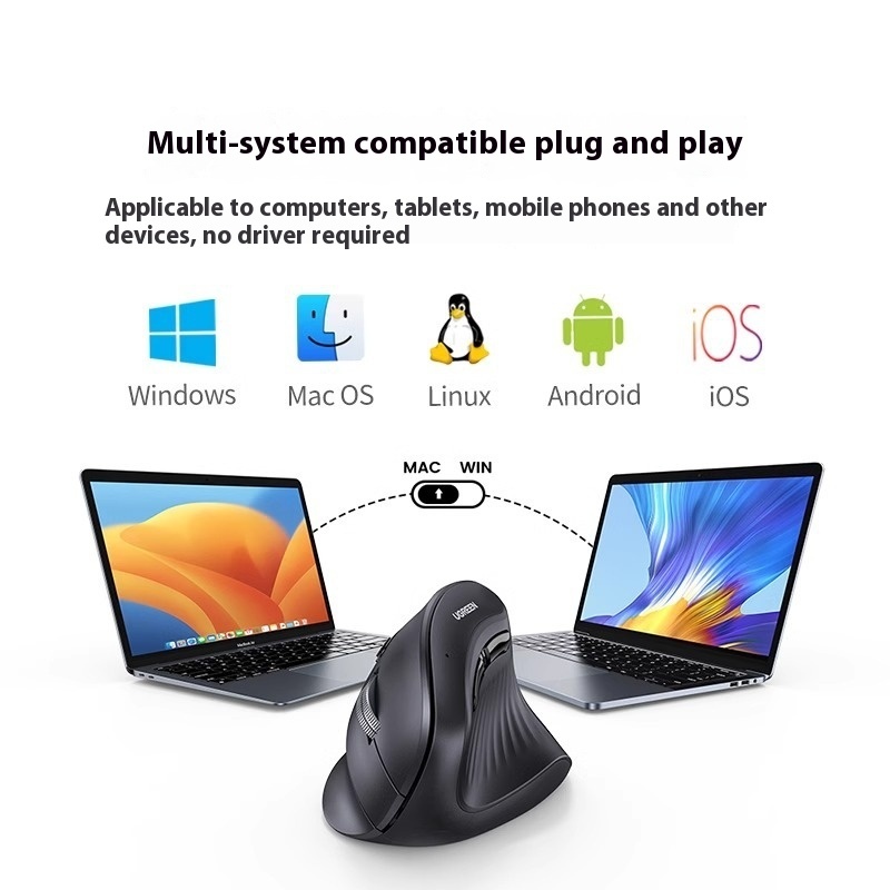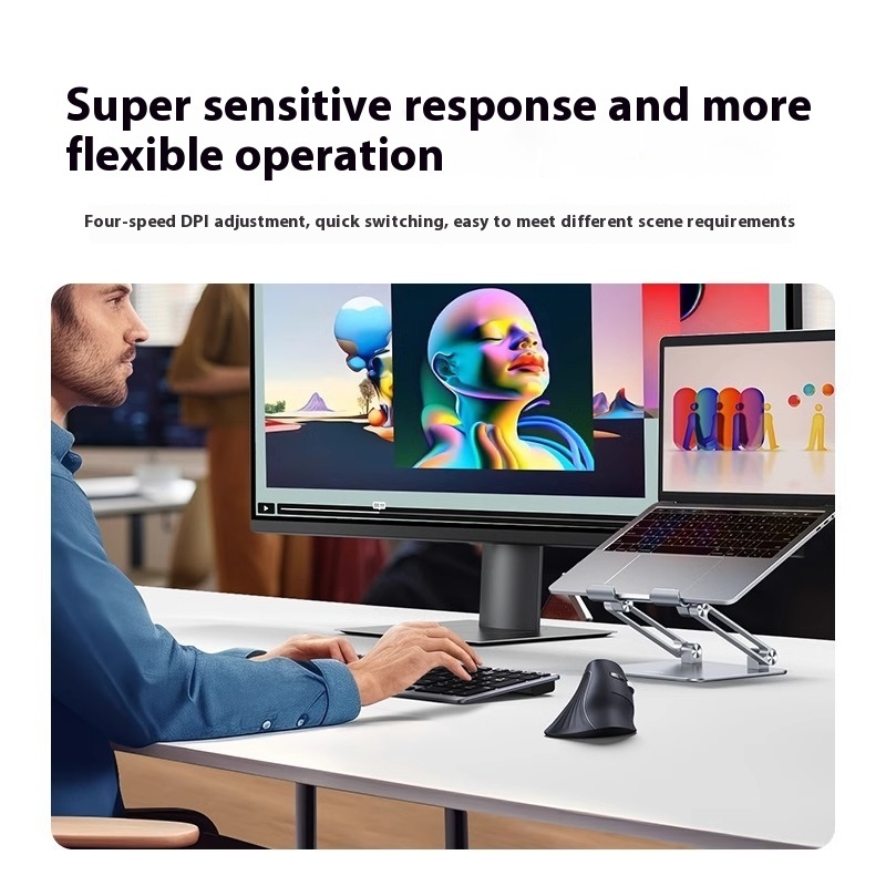 Experience seamless control with the Vertical Dual-Mode Wireless Mouse (Model: MU008). Designed for maximum comfort and efficiency, this innovative mouse supports both Wireless 2.4G and Bluetooth 5.0 connections, allowing you to work up to 10 meters away. Choose from four adjustable resolutions (1000, 1600, 2000, or 4000 DPI) to suit your precision needs, all with a responsive return rate of 125/133Hz. The compact design accommodates everyday use, powered by a single AA battery that lasts 4-6 months.