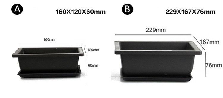 | Size | Small square deep, Large square deep, Large rectangle, Small square shallow, Large square shallow, Small rectangle |