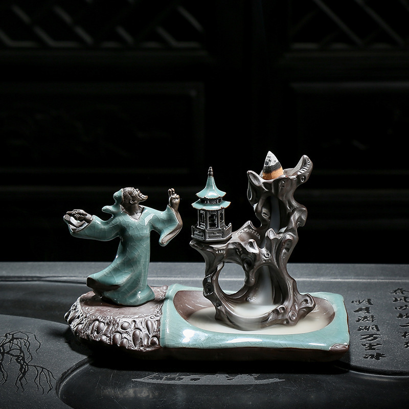 Ge Kiln Backflow Incense Burner Zen Ceramic Creative Tea Table Decoration Indoor Pan Incense Burner Incense Stick Incense Seat Sandalwood Incense Burner