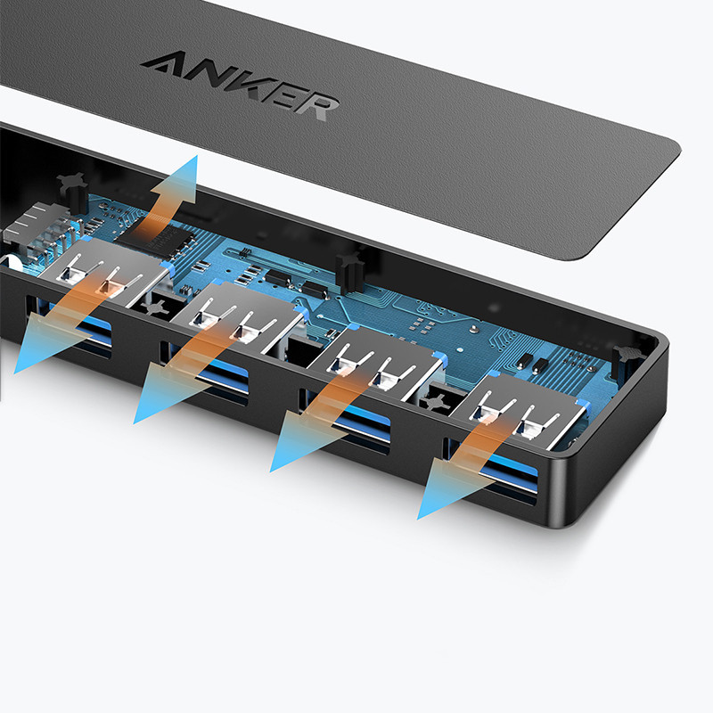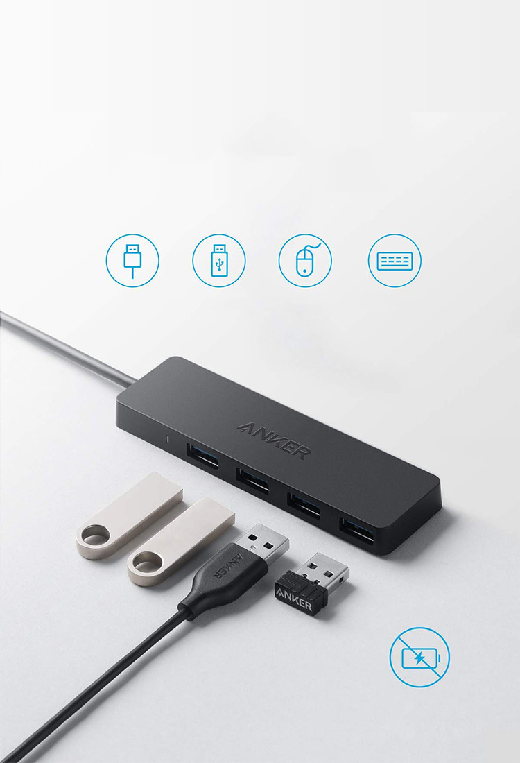 Experience the power of connectivity with the Anker 4-port USB3.0 high-speed splitter. Perfect for home or office, this compact device measures just 30×107 mm and features a 200 mm data line, making it versatile and easy to use. With four USB 3.0 interfaces, you can connect multiple devices simultaneously for efficient data transfer and charging.