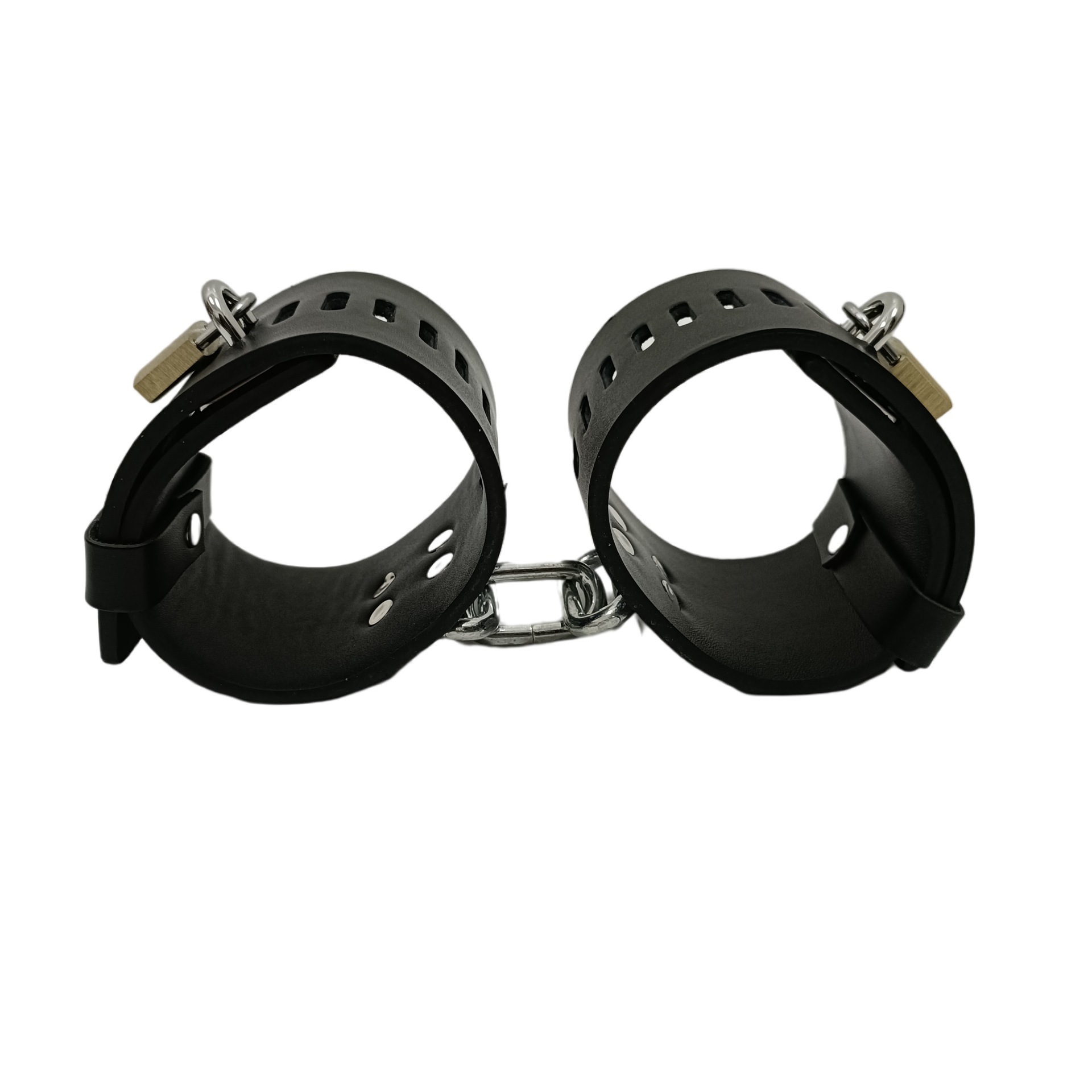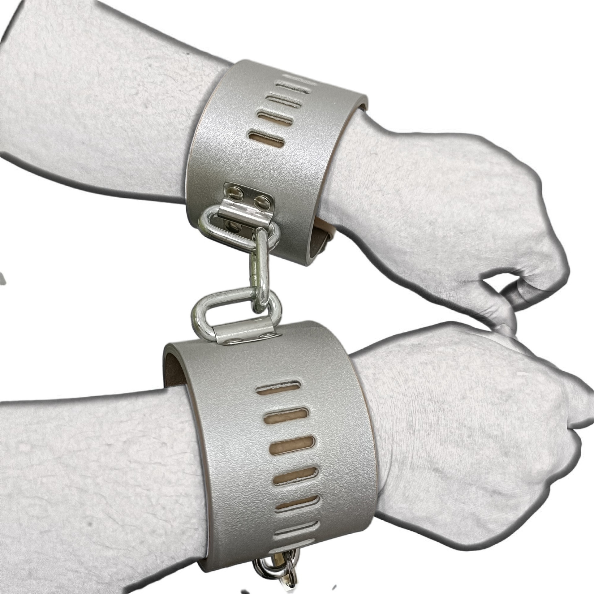 Discover the allure of our stylish handcuffs, crafted from premium artificial leather in your choice of black, silver, or red. This versatile accessory is perfect for those looking to add a touch of flair to their outfits. With a circumference of 15-31cm and a height of 5.7cm, they provide a comfortable fit without compromising style. The attached chain measures 7.5cm, making them ideal for playful adventures.