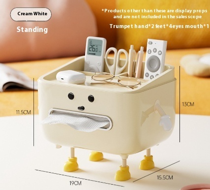 Introducing the delightful cream white tissue box, a perfect blend of functionality and whimsical design for any space. Measuring 19*15.5*13CM, this square-shaped accessory adds a touch of charm while keeping tissues within reach. Whether you’re looking to enhance your home, office, or gift it to a friend, this customizable box features adorable small size accessories including 2 hands, 2 feet, an eye, and a mouth for the sitting design, and an option for standing with 4 feet.