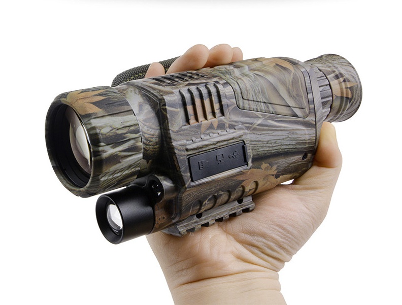 Digital night vision monocular with 5x magnification and 40mm objective lens.