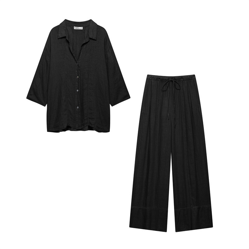 New Summer Pure Linen Shirt 4043058 Pure Linen Wide Leg Pants