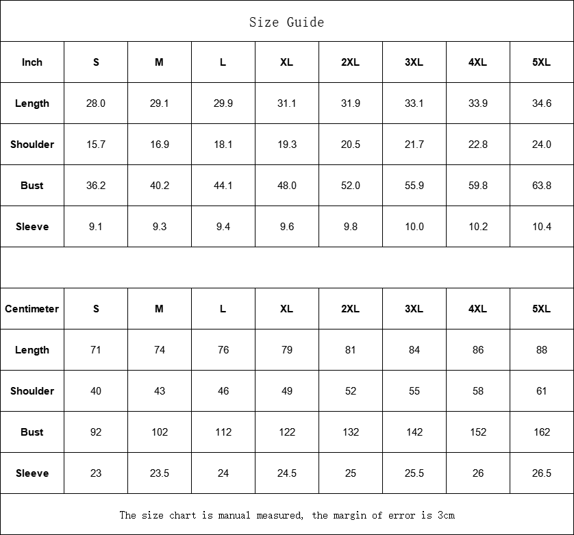 The size chart is manual measured, the margin of error is 3cm
