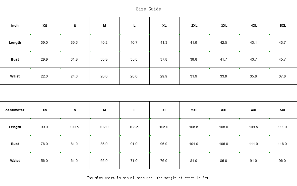 inch XS S M L XL 2XL 3XL 4XL 5XL