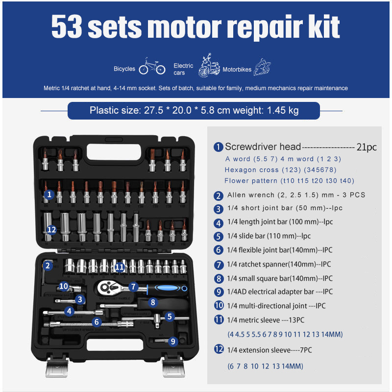 | Color | Black box 10PCS SET, 46PCS SET Nickel plating, 46PCS SET, 46SETS MOTOR REPAIR KIT, 53PCS SET |