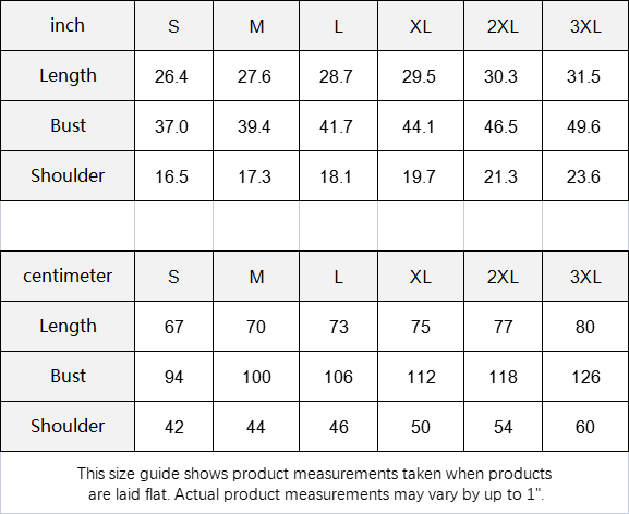 With sizes ranging from S to 3XL, find your perfect fit today!