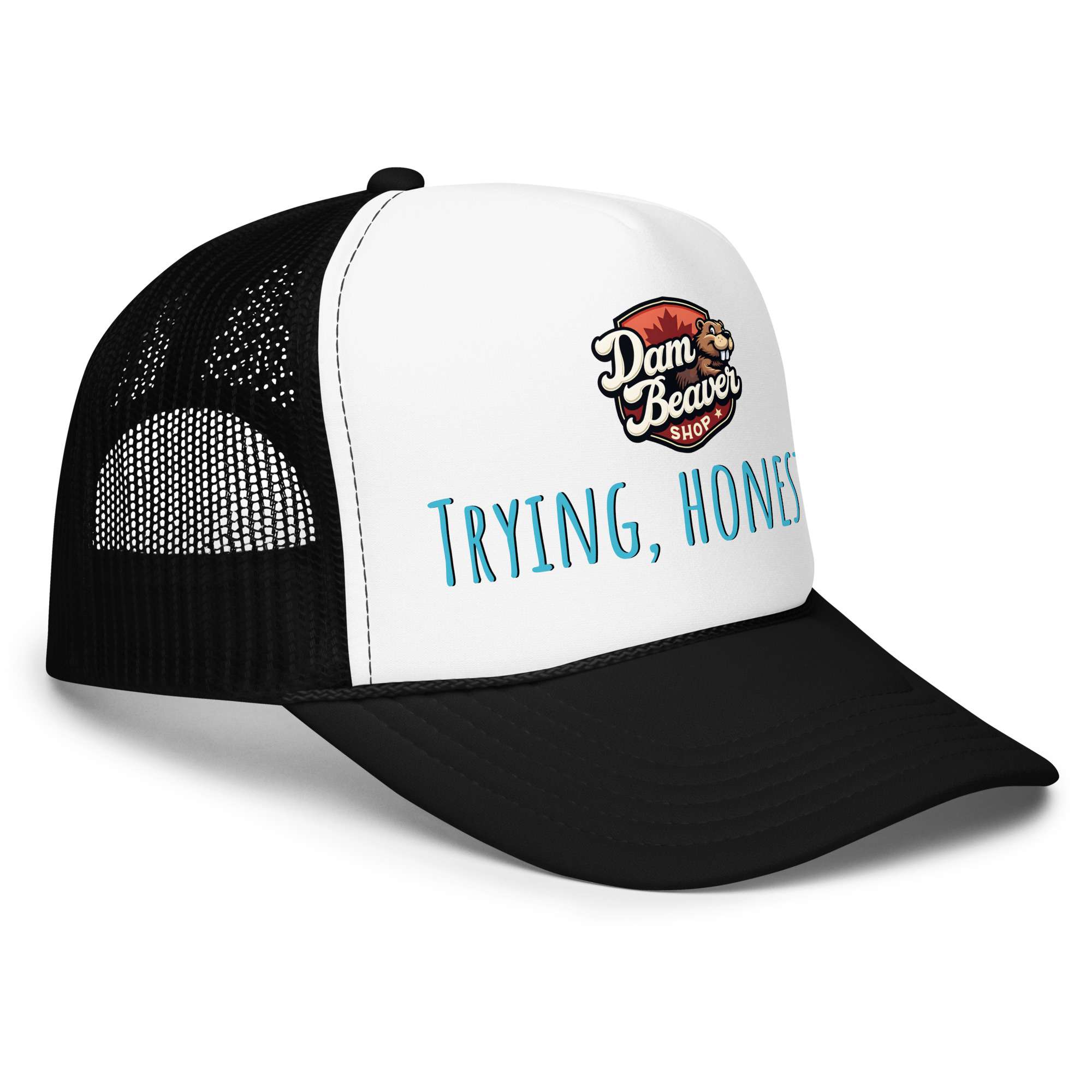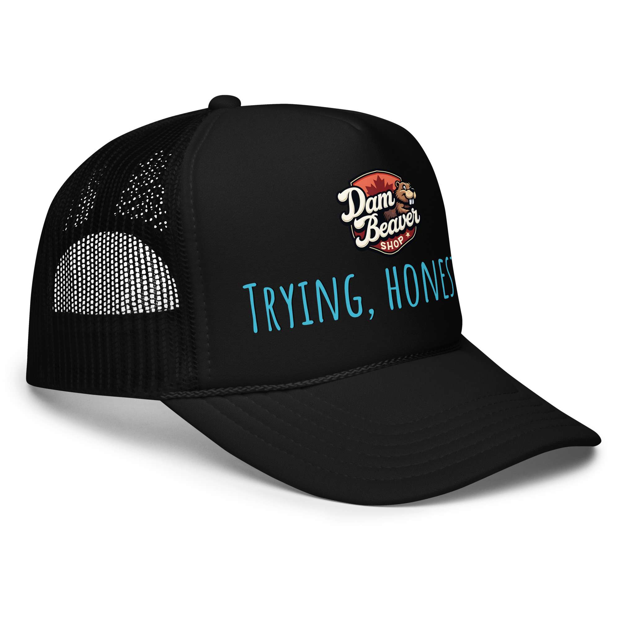 Keep it real with this trendy foam trucker hat that’s all about comfort, style, and honesty. The back declares Trying, Honestly, a little nod to the chaos of everyday life—because sometimes just showing up is enough. Made with premium foam and breathable mesh, it’s perfect for standing out without trying too hard.