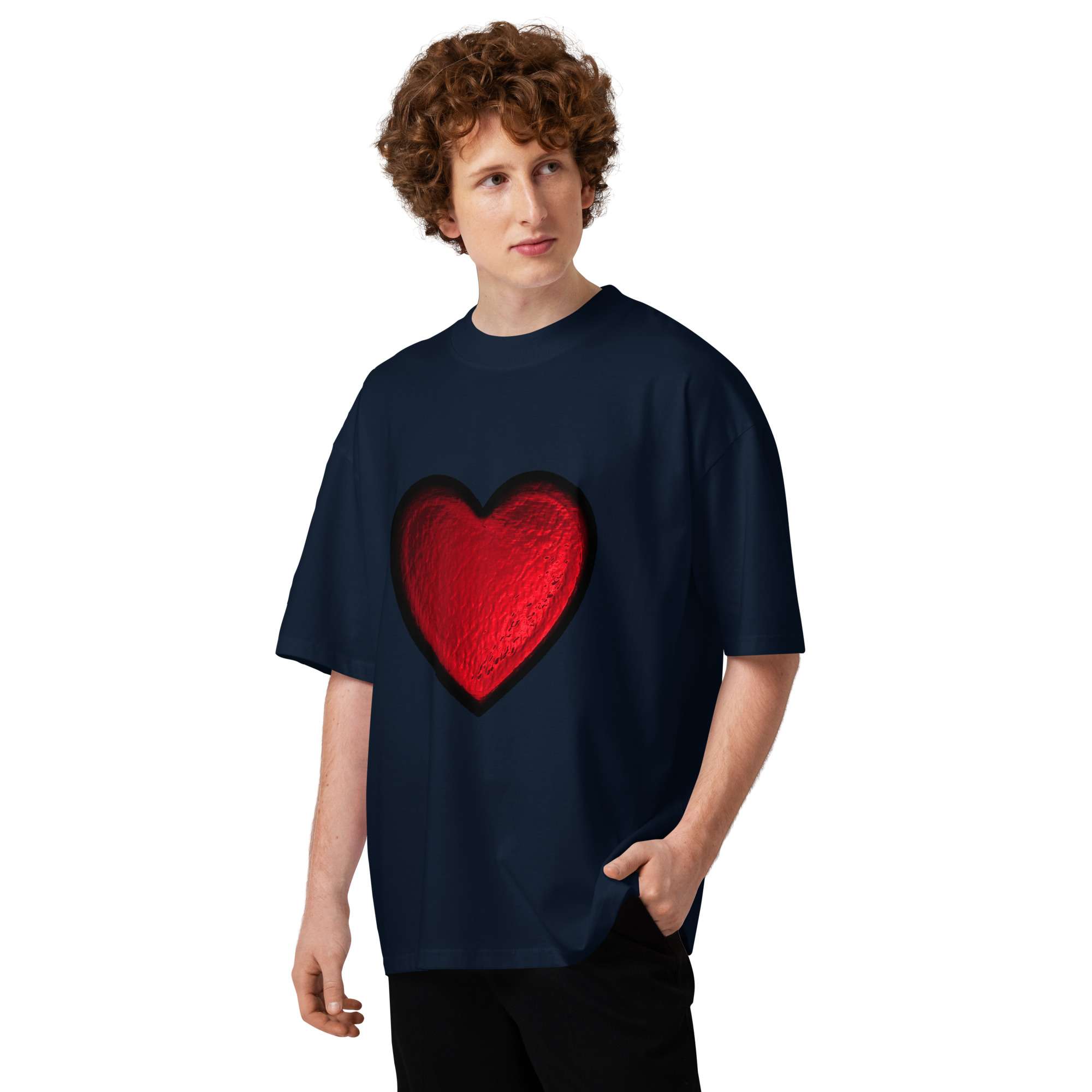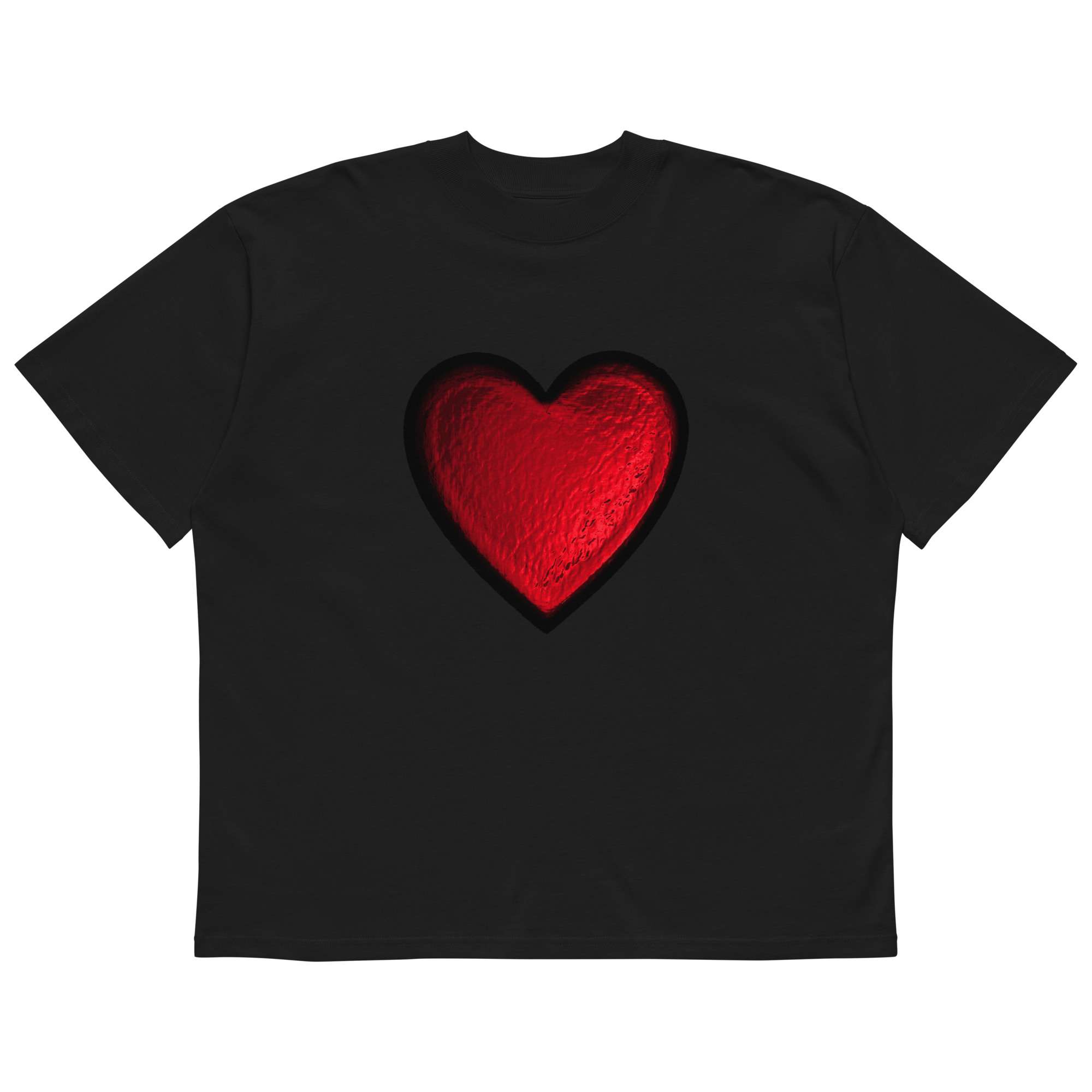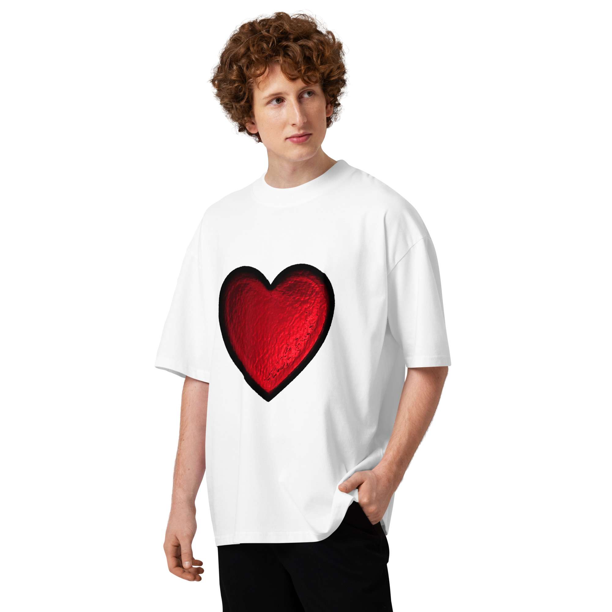 Bold, effortless, and made to stand out. This red foil print oversized t-shirt brings a subtle Valentine’s Day energy with a modern streetwear silhouette. The relaxed fit, dropped shoulders, and high neckline give it that “thrown on but still looks intentional” vibe; perfect for date nights, casual fits, or elevated everyday wear.