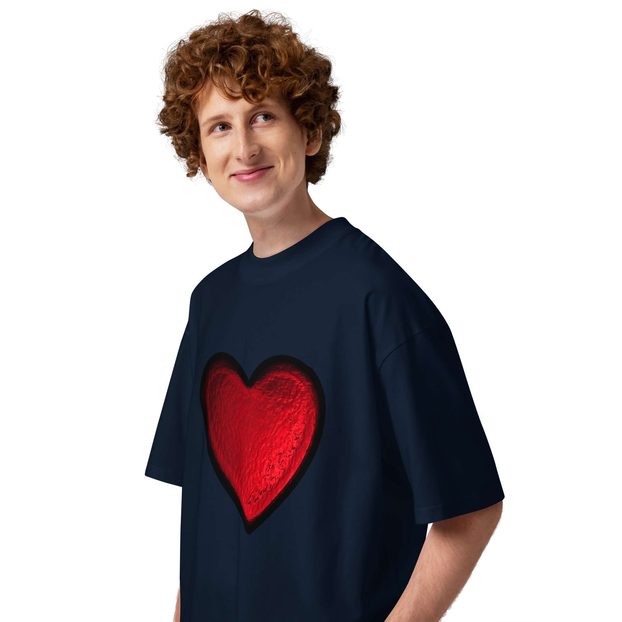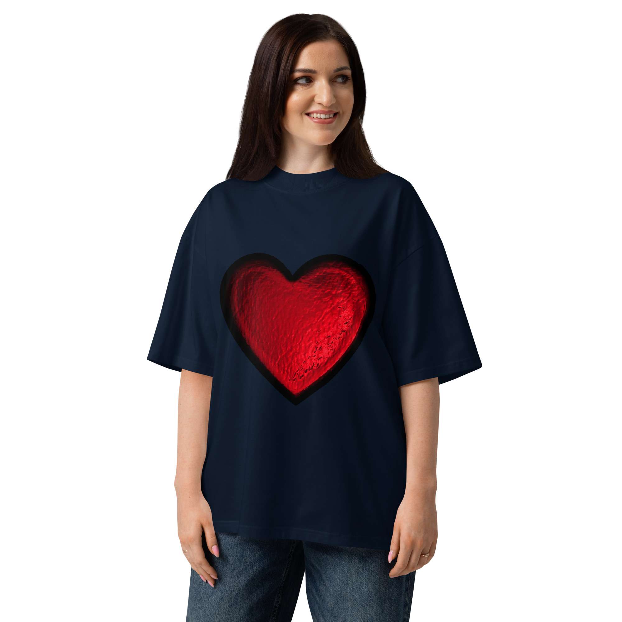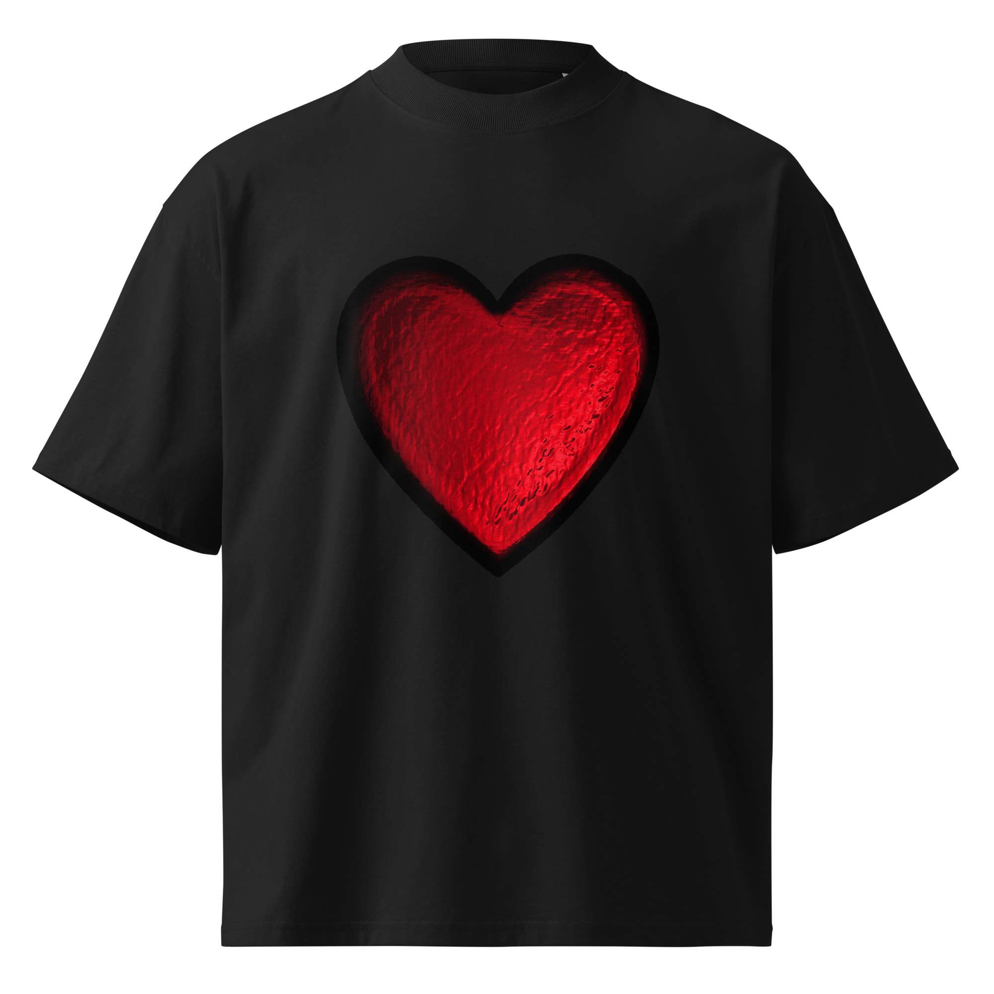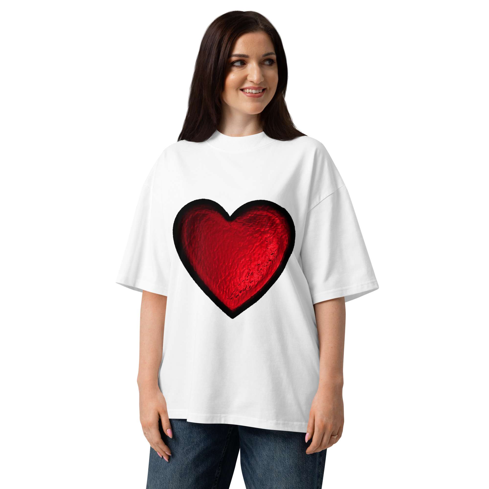 Bold, effortless, and made to stand out. This red foil print oversized t-shirt brings a subtle Valentine’s Day energy with a modern streetwear silhouette. The relaxed fit, dropped shoulders, and high neckline give it that “thrown on but still looks intentional” vibe; perfect for date nights, casual fits, or elevated everyday wear.