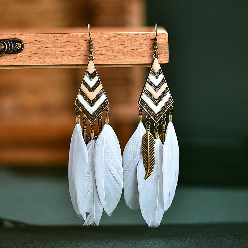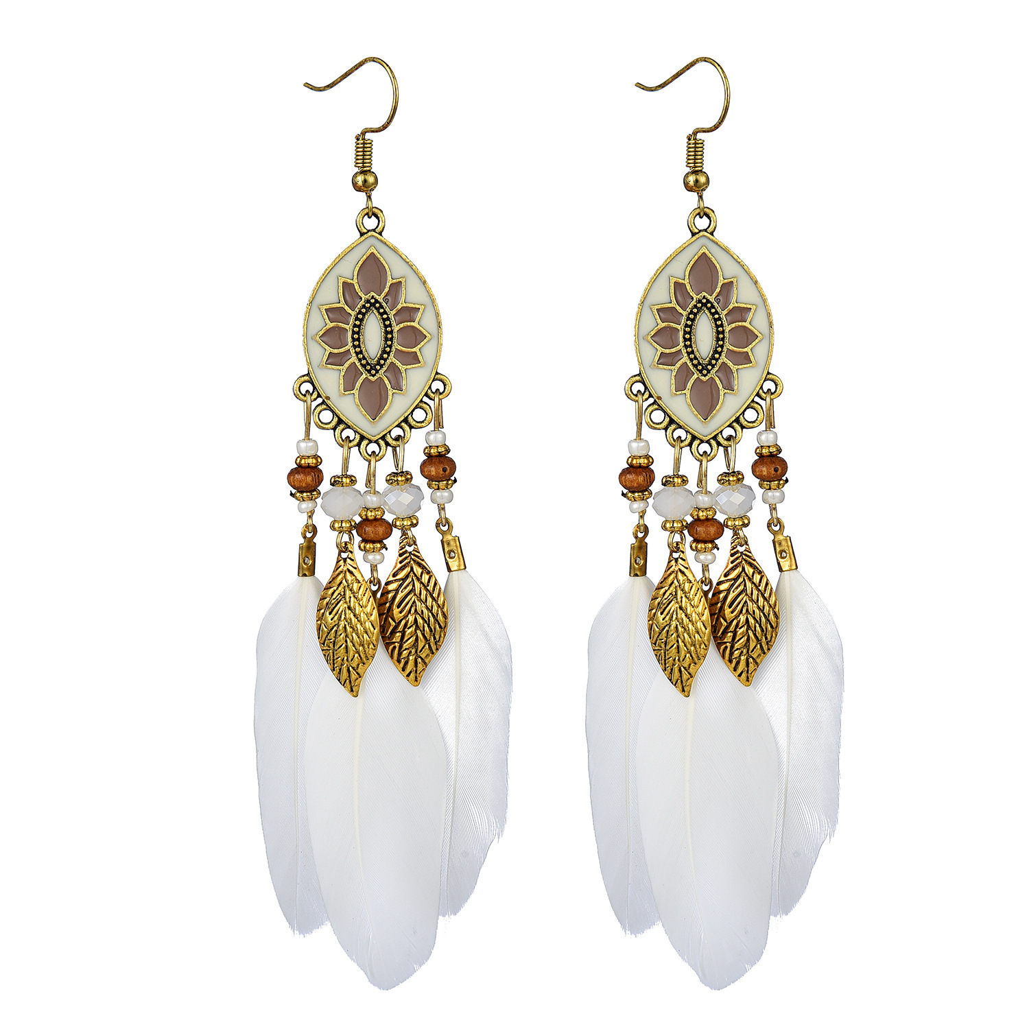 Discover the elegance of our stunning earrings, beautifully crafted to elevate any look. These exquisite pieces feature a unique electroplating treatment that ensures durability while highlighting their captivating colors in shades of white, including white 1006, 1111, 2016, and many more. Made from lightweight feather material, they come in enchanting shapes like leaves, drops, and geometric designs, adorned with fashionable tassels and chains for a trendy touch.