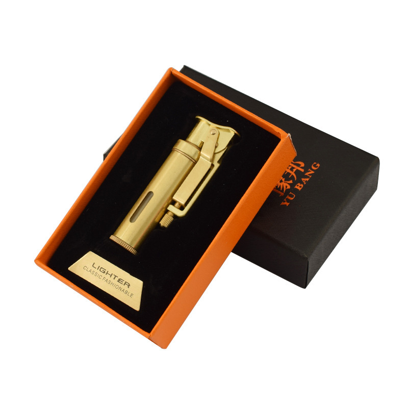 Introducing the Yubang Jinyu Lighter, a blend of style and functionality. Crafted from durable zinc alloy, this lighter not only boasts a sleek design but also stands the test of time. With dimensions of 7.6cm in height, 2.5cm in width, and 1.5cm in thickness, it fits comfortably in your hand or pocket.