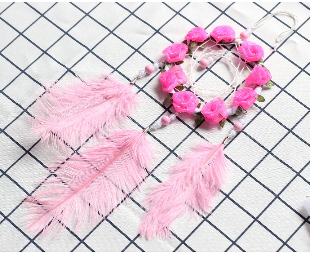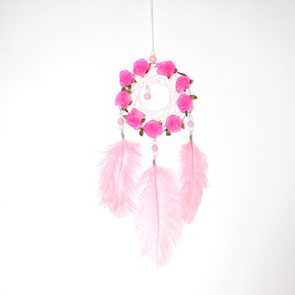 Women’s Dreamcatcher Wind Chimes Room Decorative Pink Ostrich Feather Ornaments