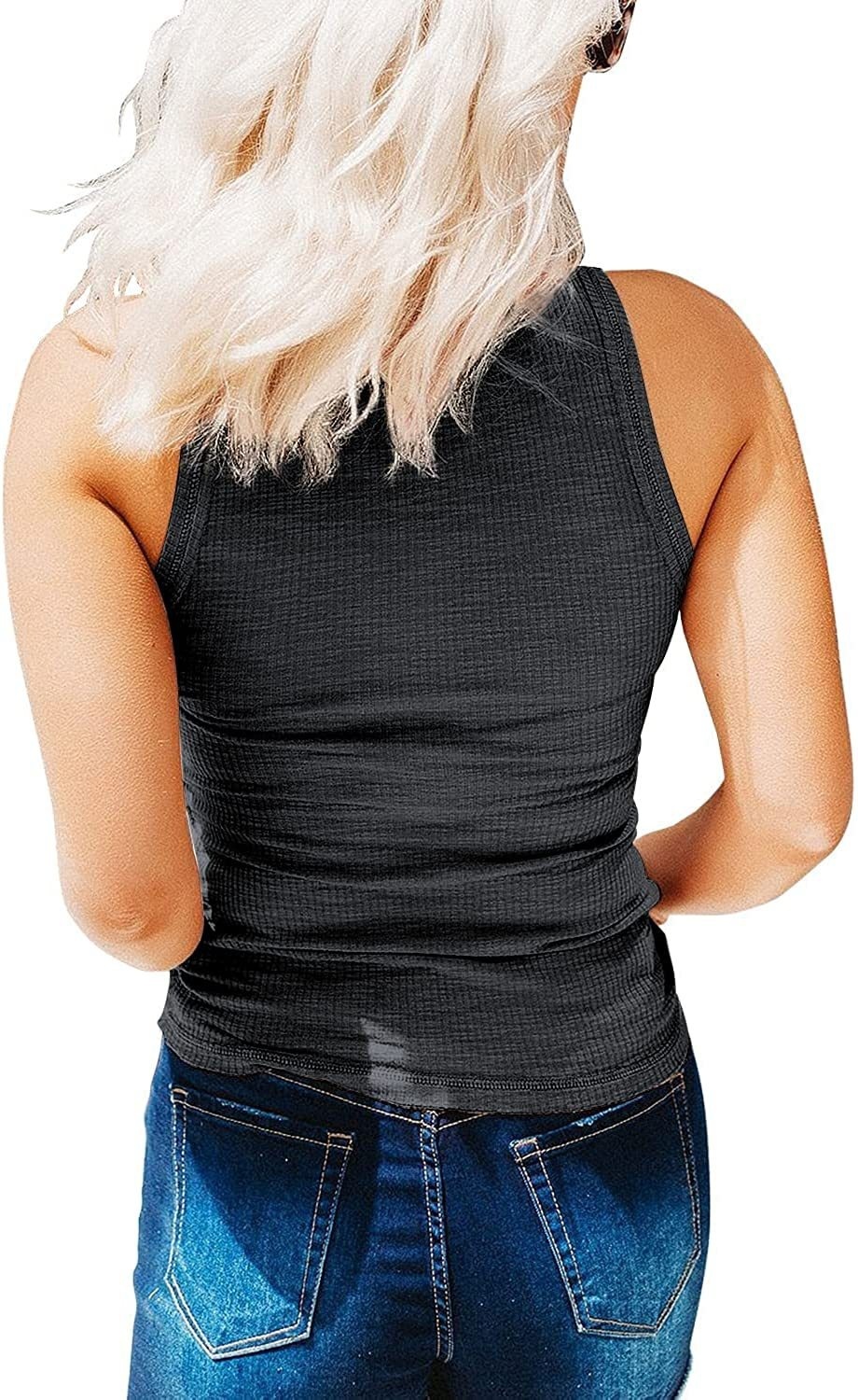 Women’s Fashion Vest Summer Casual Camisole Slim Fit Henley Button Shirt