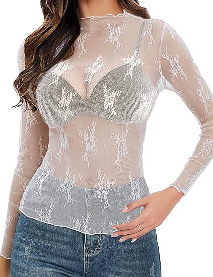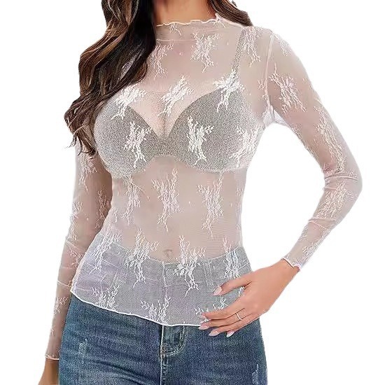 Women’s Lace Blouse Long Sleeve Transparent Shirt