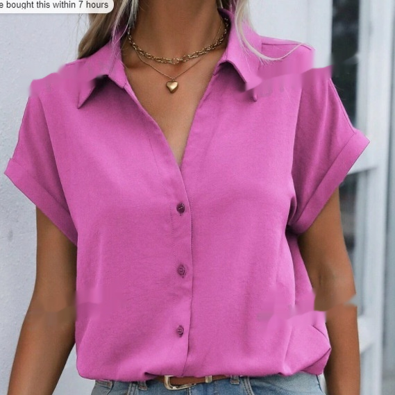 Women’s Short-sleeved Lapel Button Shirt Top